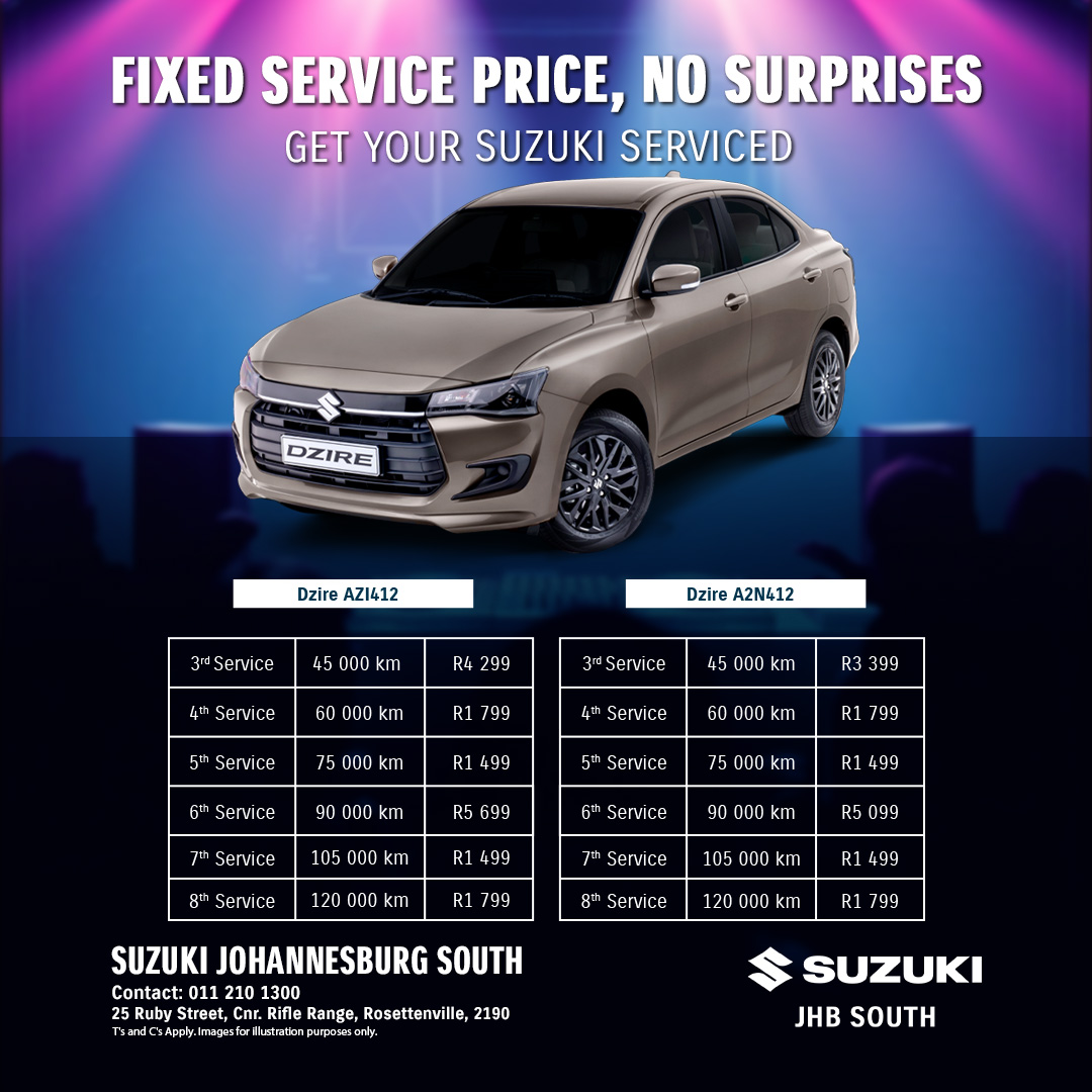 | 3rd Service 45 000 km R3 399 | 4th Service 60 000 km R1 799 | 5th Service 75 000 km R1 499 | 6th Service 90 000 km R5 099 | 7th Service 105 000 km R1 499 | 8th Service 120 000 km R1 799 |